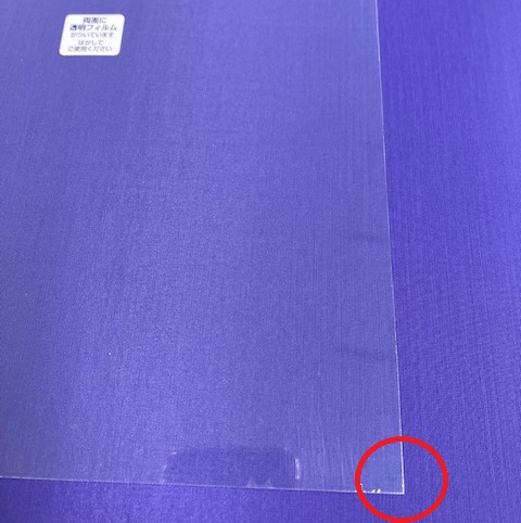 赤丸の部分(シートの角)よりゆっくりはがします。